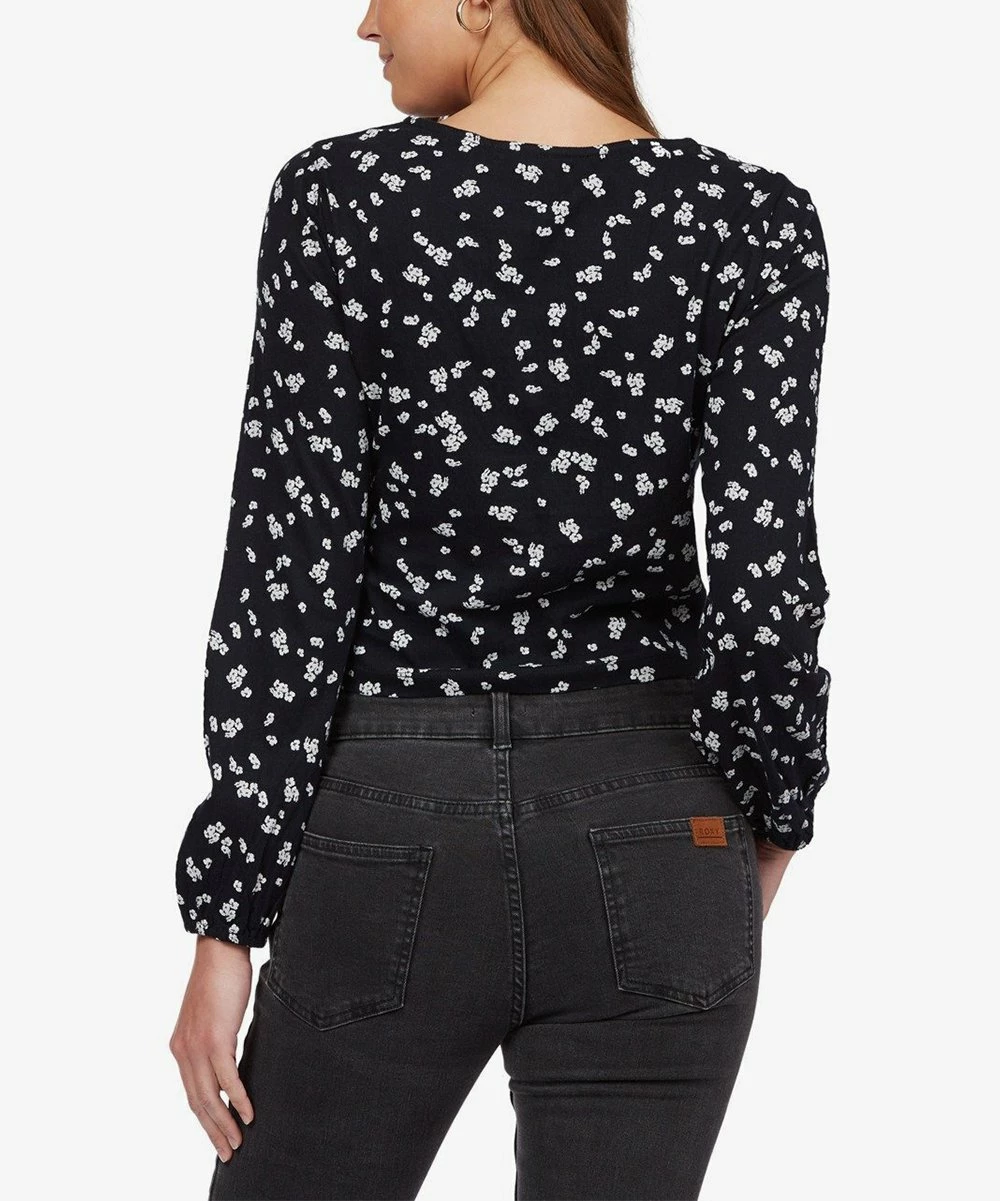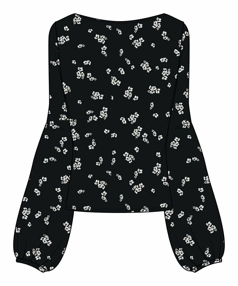 Spruce up your everyday looks with this puff-sleeve top boasting a charming floral print and a lace-up v-neckline.