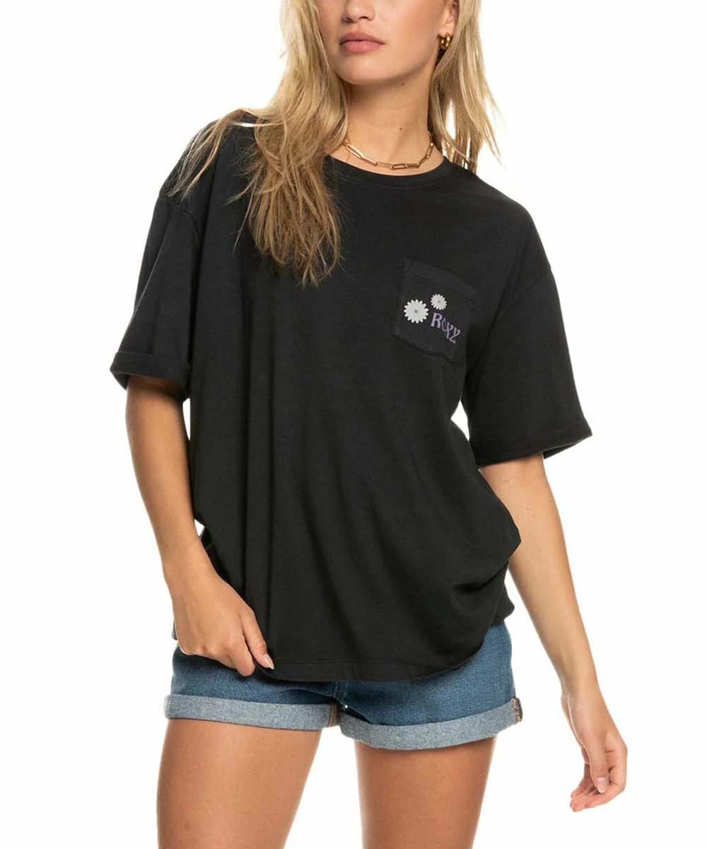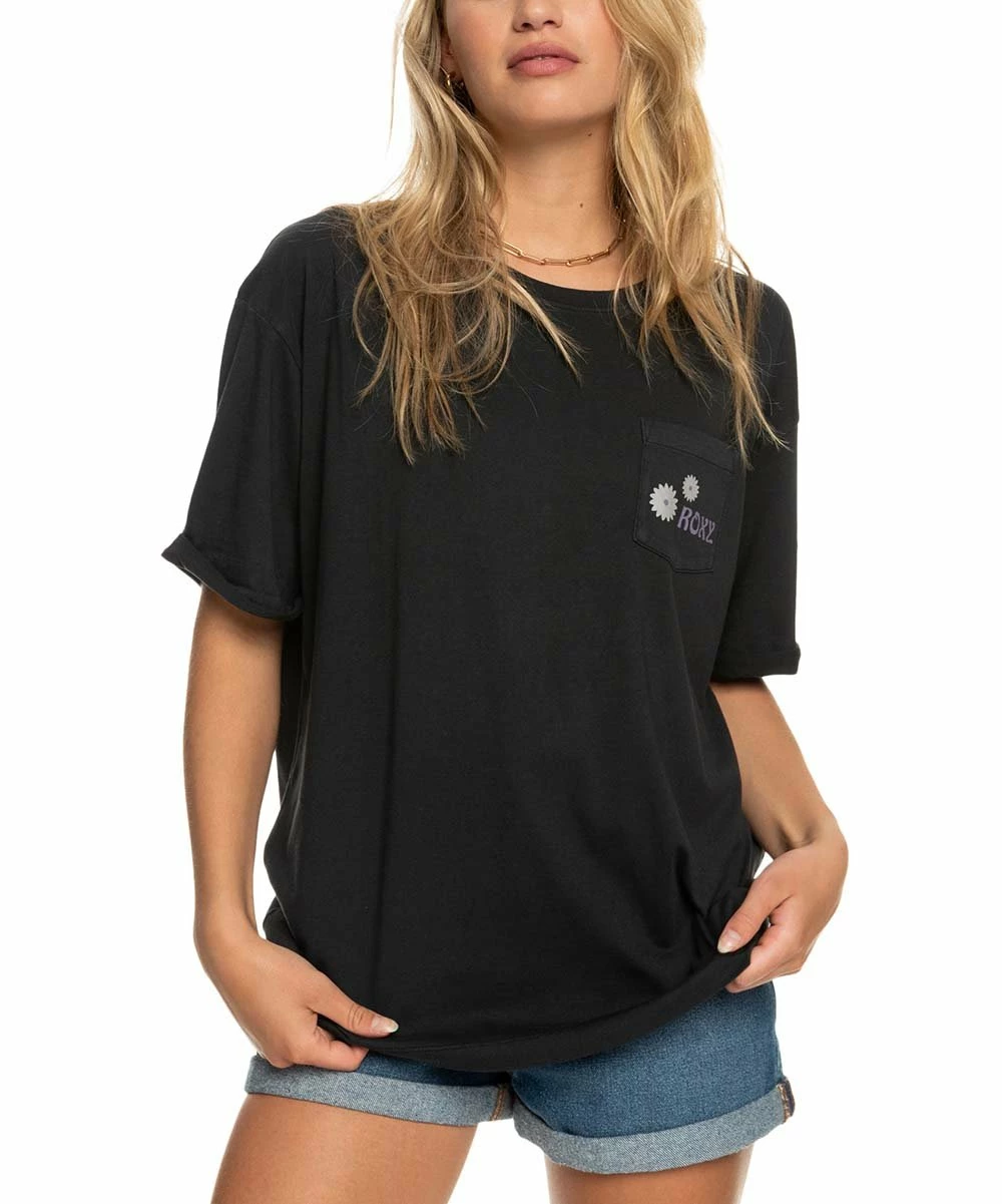 Oversize rib-knit collar tee is made of soft pigment-wash cotton. Front chest pocket.