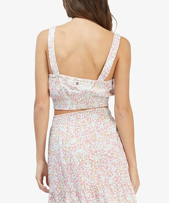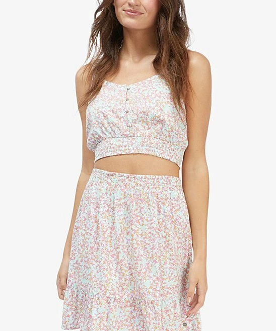 Cropped tank featuring a jewelry-friendly v-neck design and an eye-catching smocked hem.
