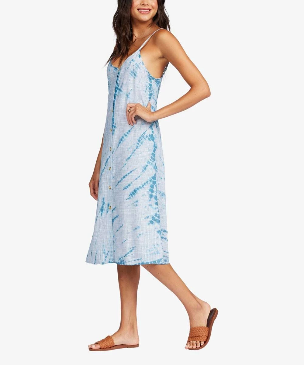 Greet sunny days in breezy style with this cotton-soft dress showcasing a shoulder-baring design and a tie-dye print for beachy appeal.