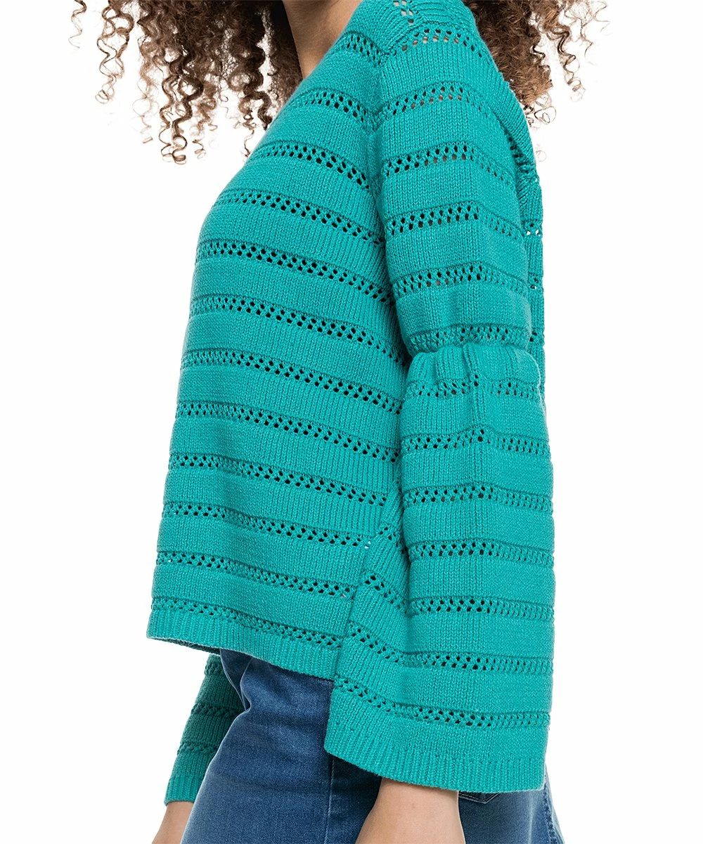 Stay warm in-style with this classic cable knit sweater made with cozy cotton-blend material. Easily layer with your favorite pieces to create endless everyday outfits.