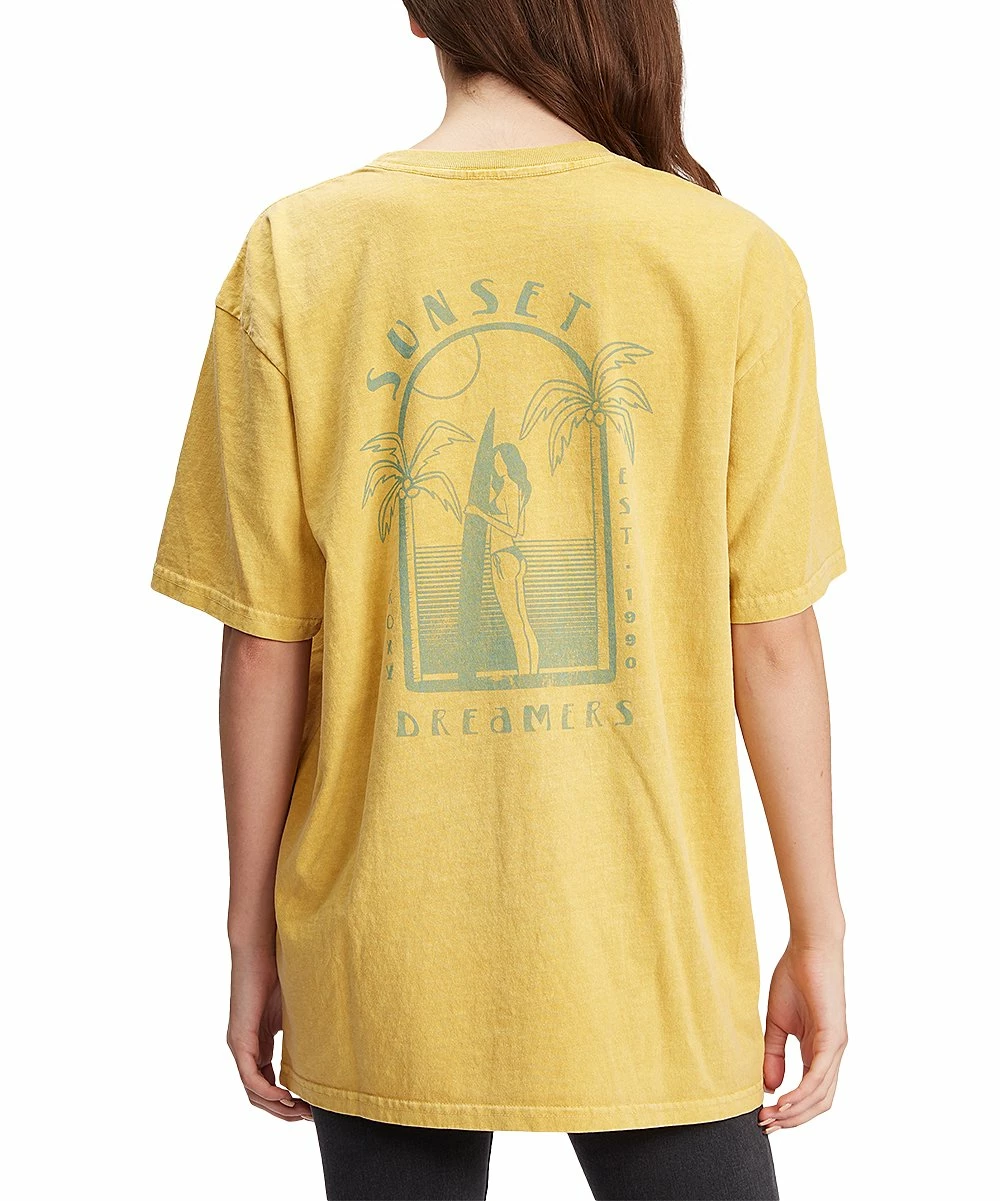 Tee featuring a flowy oversize fit and a classic crewneck collar.