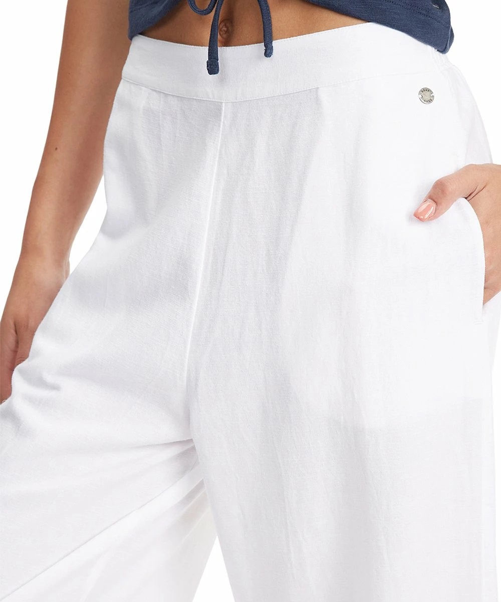 Wide-leg pants featuring soft cotton-blend fabric and a sun-friendly capri cut.