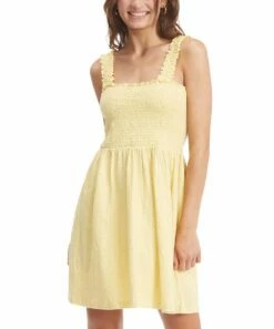 Discount 🛒 Roxy Sundress Yellow Hanging 10 Wide-Strap Smocked Bodice Mini 👗 Dress – Juniors 🔥