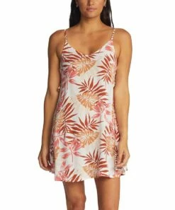 Discount 🛒 Roxy Coral & Snow White Seaside Beachy Vibes Cami-Strap Mini 👗 Dress – Juniors ⭐