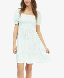 Brand new ๐ฅ Roxy Brook Green Palm Tree Hello Petal Puff-Sleeve A-Line ๐ Dress – Juniors ๐